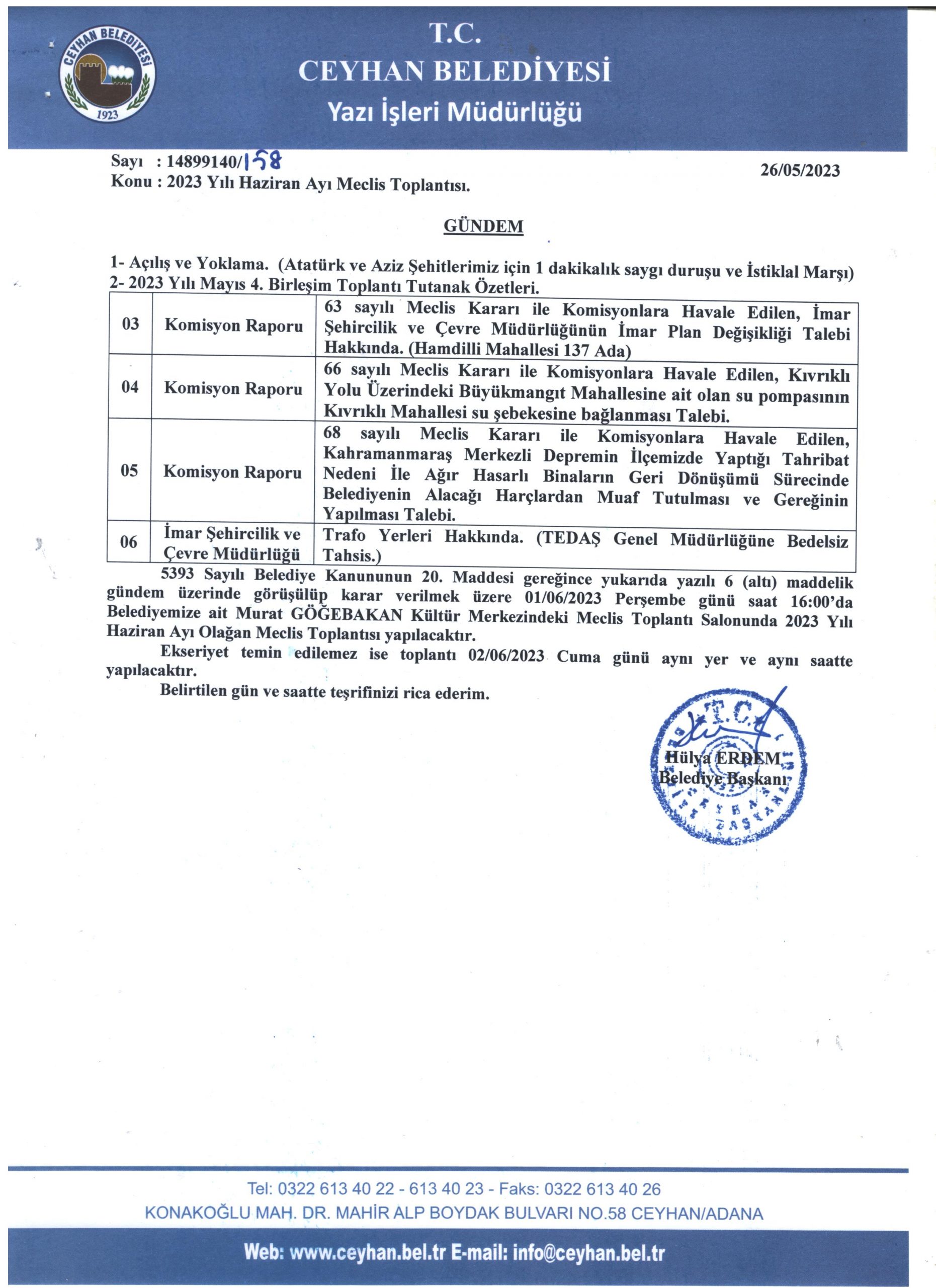 2023 HAZİRAN AYI MECLİS GÜNDEMİ