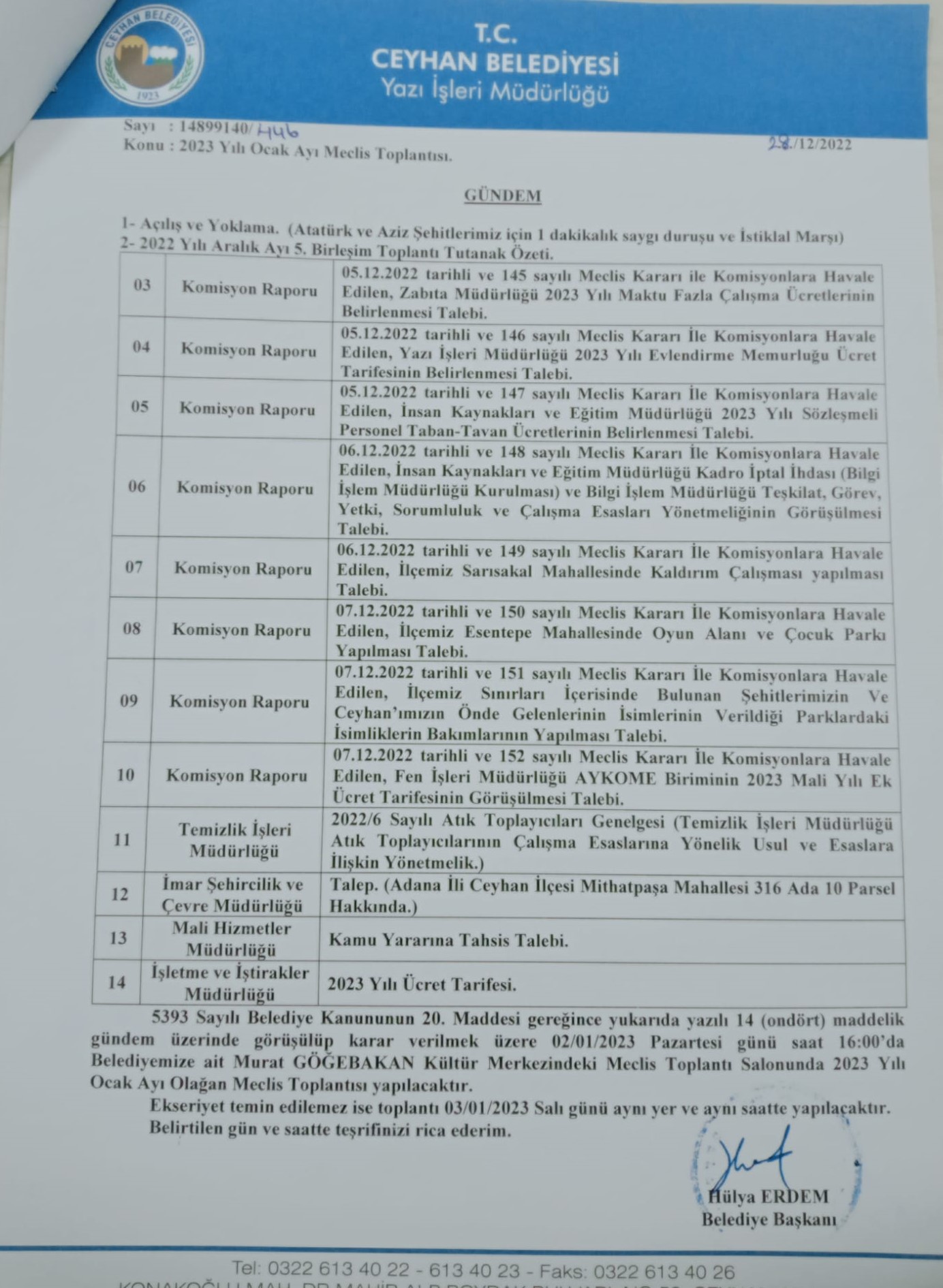 2023 OCAK AYI MECLİS GÜNDEMİ