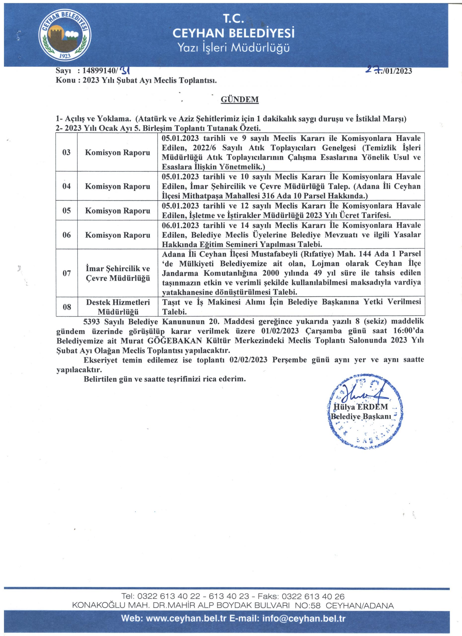 2023 ŞUBAT AYI MECLİS GÜNDEMİ
