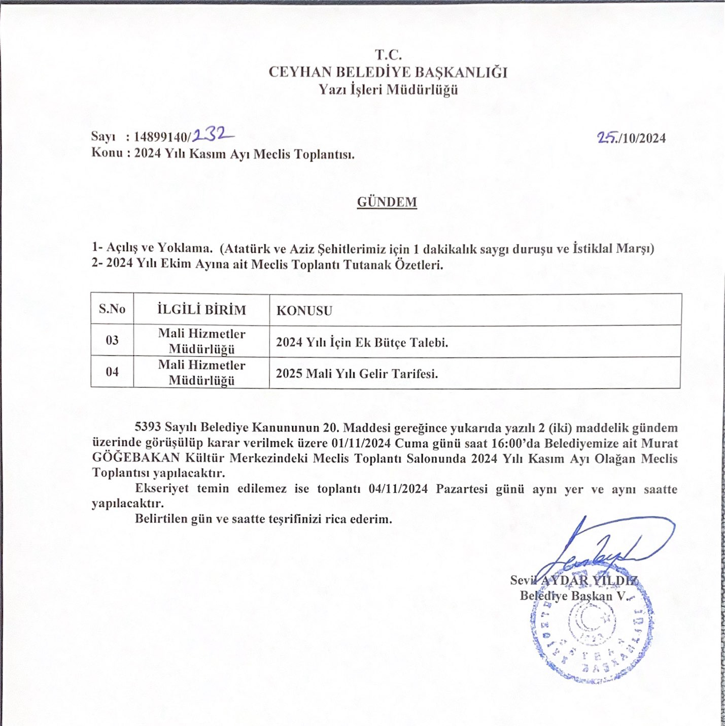2024 KASIM AYI MECLİS GÜNDEMİ