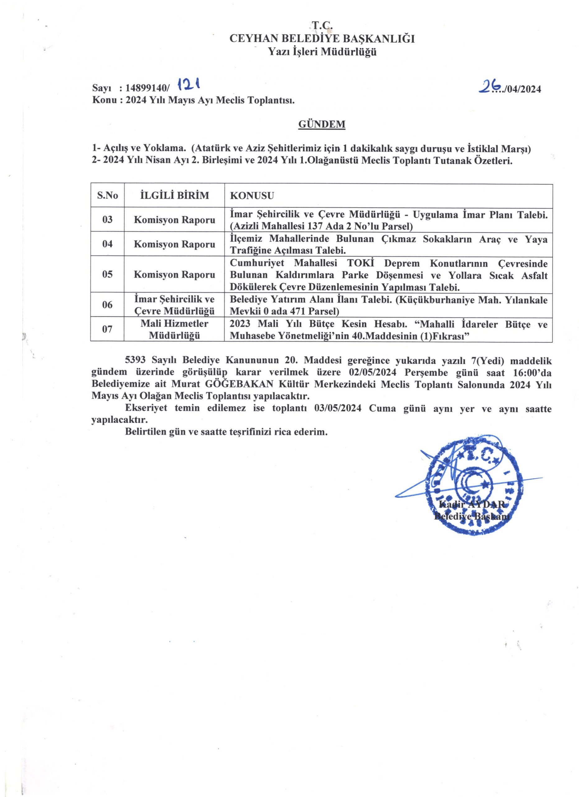2024 MAYIS AYI MECLİS GÜNDEMİ