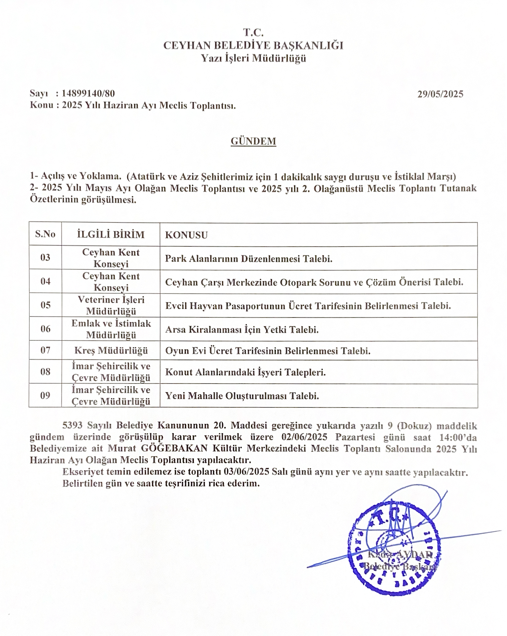 2025 Haziran ayı olağan Meclis Gündemi